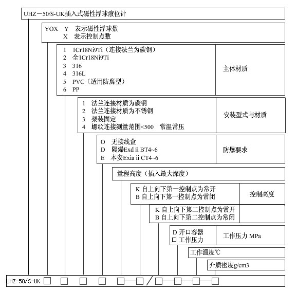 UHZ-50/S-UK系列插入式磁性浮球控制器常用規(guī)格型號(hào)