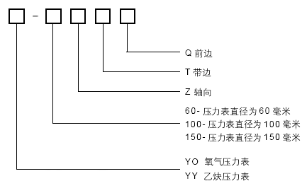 例:YO-100 0-1MPa直徑為本100毫米測壓范圍0-1MPa的氧氣壓力表