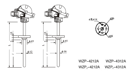 | WZP-1212A | Pt100 | -200~500 | A級(jí)或B級(jí) | ≤45 | 225 250 300 350 400 450 550 650 900 1150 | 防濺式 |