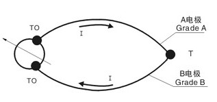 鎧裝熱電偶的工作原理與一般工業(yè)熱電偶一樣,基于Seeback(塞貝克)效應(yīng),即:如果由兩種不同成分的均質(zhì)導(dǎo)體(熱電極)組成閉合回路,當(dāng)兩端存在溫度梯度時(shí),回路中就有電流通過,那未兩端之間就存在Seeback電勢(shì)-熱電勢(shì)(如下圖所示)