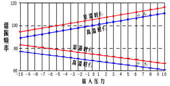 當(dāng)加有靜壓(工作壓力)時(shí),兩形狀、尺寸、材質(zhì)完全一致的諧振梁形變相同, 故頻率變化也一致,故偏差自動(dòng)清除(公式和圖類(lèi)似溫度影響)。