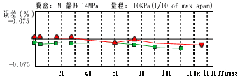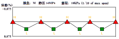 接液膜片與膜盒本體采用獨(dú)創(chuàng)的波紋加工技術(shù),使外部壓力增大到某一數(shù)值時(shí), 接液膜片能與本體完全接觸,硅油傳遞給傳感器的壓力不再隨外力的增加而增 加,從而達(dá)到對(duì)傳感器的保護(hù)作用。(圖4)、(圖5)所示為EJA過(guò)壓特性。