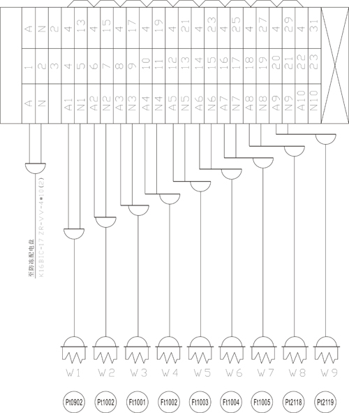 圖4 帶管路伴熱電源保溫箱端子排接線圖