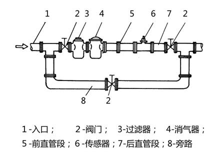 若流體含雜質(zhì),則應(yīng)在傳感器上游側(cè)裝過(guò)濾器,對(duì)于不能停流的,應(yīng)并聯(lián)安裝兩套過(guò)濾器輪流清除雜質(zhì),或選用自動(dòng)清洗型過(guò)濾器。若被測(cè)液體含有氣體,則應(yīng)在傳感器上游側(cè)裝消氣器。過(guò)濾器和消氣器的排污口和消氣口要通向安全的場(chǎng)所。