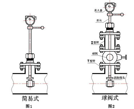 按國際標準化組織IS07145(在環(huán)形截面封閉管道中的流體流量測定—在截面一點的速度測量法),采用埋入壓電晶體的渦街測速探頭,插入大口徑工業(yè)管道內(nèi),將卡門旋渦頻率轉(zhuǎn)換為與流量成正比的電流或電壓脈沖信號或4~20mADC電流信號。