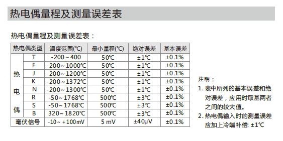 標(biāo)準(zhǔn)精度:±0.1%(參見熱電偶量程及測量誤差表)