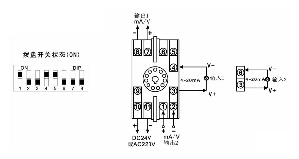 SWP-M30系列模塊可帶雙通道,并且可組成不同系列模塊的組合。熱電阻/熱電偶溫度變送模塊。電壓/電力/頻率轉(zhuǎn)換模塊。配電模塊--它給二線制變送器提供電壓的同時(shí),接收來(lái)自變送器的與差壓、壓力、液面等成比例的4--20MA DC輸出信號(hào)。數(shù)學(xué)運(yùn)算模塊--它將輸入信號(hào)進(jìn)行數(shù)學(xué)運(yùn)算(開(kāi)方、加減、乘除、比值等)后,轉(zhuǎn)換為隔離的1--5V或4--20MA信號(hào)輸出。