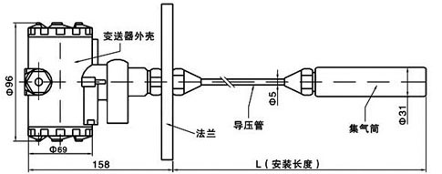 高溫導(dǎo)壓液位變送器(氣體導(dǎo)壓式,用于高溫、腐蝕性液體、污水等)的傳感器部分與信號(hào)處理電路在接線盒內(nèi)部,由投入液體內(nèi)的集氣筒內(nèi)的氣體與介質(zhì)接觸,通過(guò)導(dǎo)氣管將壓力傳遞給傳感器,避免了傳感器與被測(cè)介質(zhì)的直接接觸,適應(yīng)于高溫強(qiáng)腐蝕性等場(chǎng)合,有效地解決了高溫腐蝕液體以及污水液位測(cè)量的難題。它特別適合于高溫、腐蝕性液體和污水的測(cè)量。