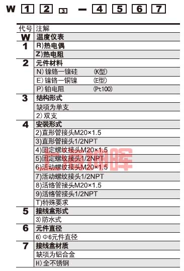 WZ系列可卸式隔爆熱電阻型號表示