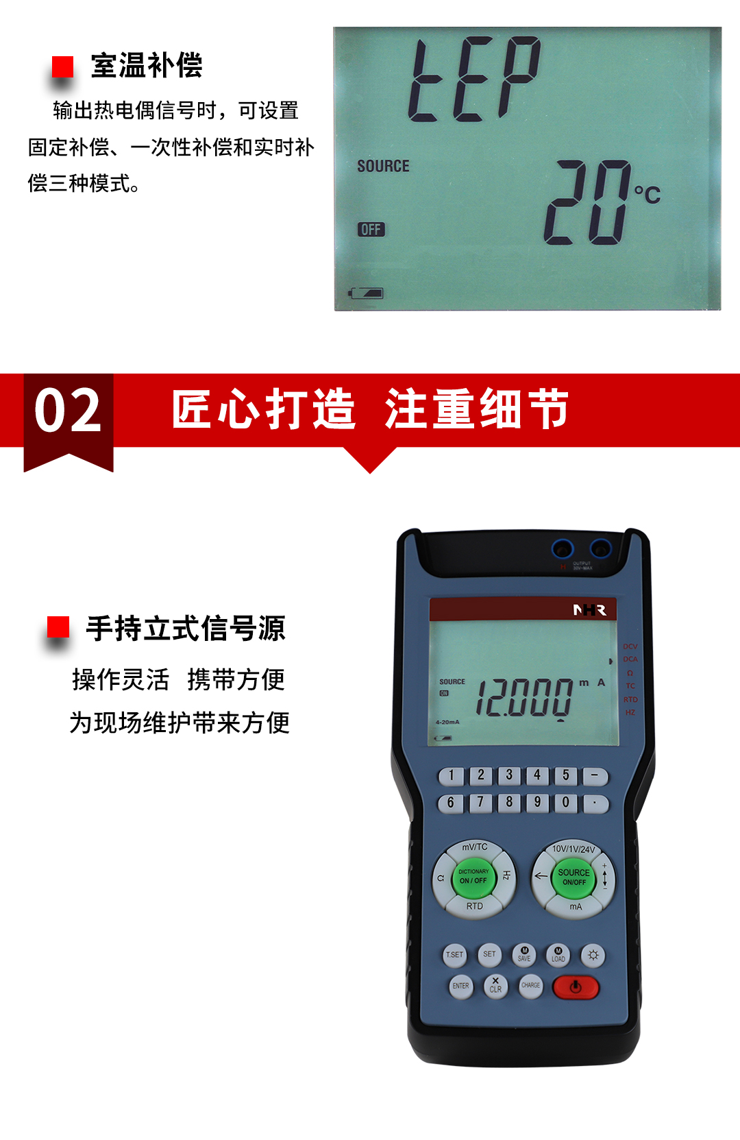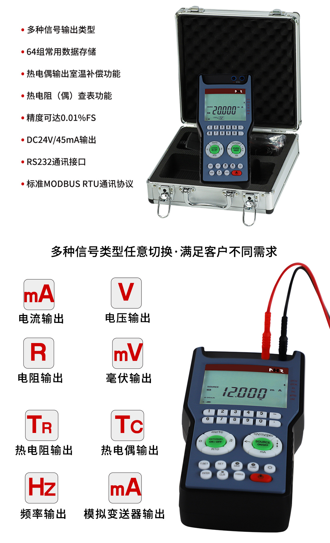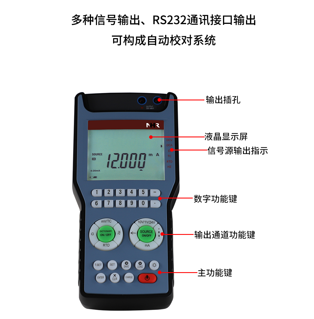 NHR-200信號(hào)發(fā)生器是一種多功能、高精度的便攜式信號(hào)源,可用于輸出各種規(guī)格的工業(yè)信號(hào),支持電流、電壓、電阻、頻率、熱電偶、熱電阻等多種信號(hào)輸出類(lèi)型。