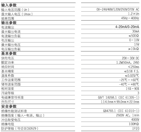 產(chǎn)品名稱 | 型號(hào) | 輸入信號(hào) | 輸出信號(hào) | 供電方式 |