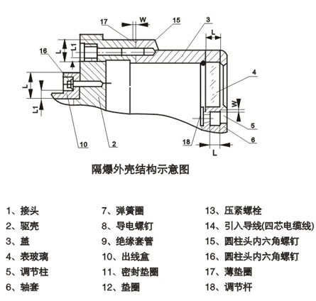 注:隔爆接合面的有效長度和間隙寬度的范例機(jī)參見隔爆外殼結(jié)構(gòu)示意圖