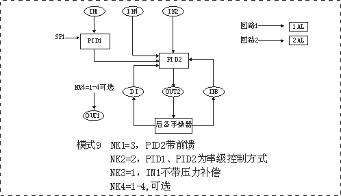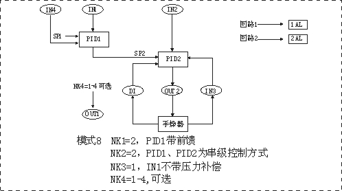 WP-KS805系列雙回路串級(jí)智能PID調(diào)節(jié)控制儀,具有5個(gè)模擬輸入(IN1-IN5)2個(gè)模擬輸出(OUT1、OUT2),一個(gè)開關(guān)量輸入DI,2個(gè)開關(guān)量輸出和豐富的控制算法,適用于鍋爐汽包水位三沖量控制或兩沖量控制并可帶汽包水位壓力補(bǔ)償功能適用于一般工業(yè)過程中溫度、壓力、液位、流量等各種過程參數(shù)的串級(jí)控制,前饋控制、雙路控制等,并可帶后備操作器,與后備控制器配套實(shí)現(xiàn)手動(dòng)/自動(dòng)無擾切換。