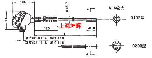 | K | 單支 | 01DR | 刀刃式爐管表面接地型 | Φ12.7 Φ12 Φ10 Φ9.5 Φ8 Φ6 | 0~800℃ | 321 316 | 防水接線盒 |