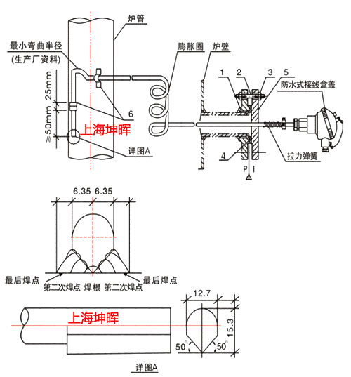 刀刃式、屏蔽刀刃式鎧裝熱電偶主要用于石化、電力、冶金、機(jī)械和食品工業(yè)中,加熱爐的爐壁及爐管溫度測(cè)量。它采用定位卡,將測(cè)量端的刀刃形熱電偶固定在爐壁等部位,通過(guò)測(cè)量端把感受到的溫度轉(zhuǎn)換成熱電勢(shì)信號(hào),送至顯示和調(diào)節(jié)儀表進(jìn)行控制。以保證加熱爐的安全運(yùn)行。