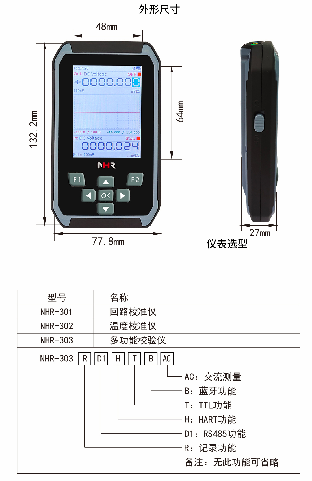 NHR-300多功能校驗儀是帶測量與輸出的過程信號校驗儀。產(chǎn)品具有高精度、信號任意切換、續(xù)航能力強、大彩屏占比、小巧可裝口袋等特點,產(chǎn)品功能設置簡單易用,為使用者帶 來了更便捷的體驗。